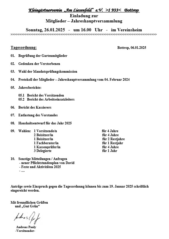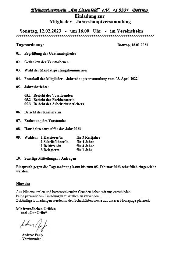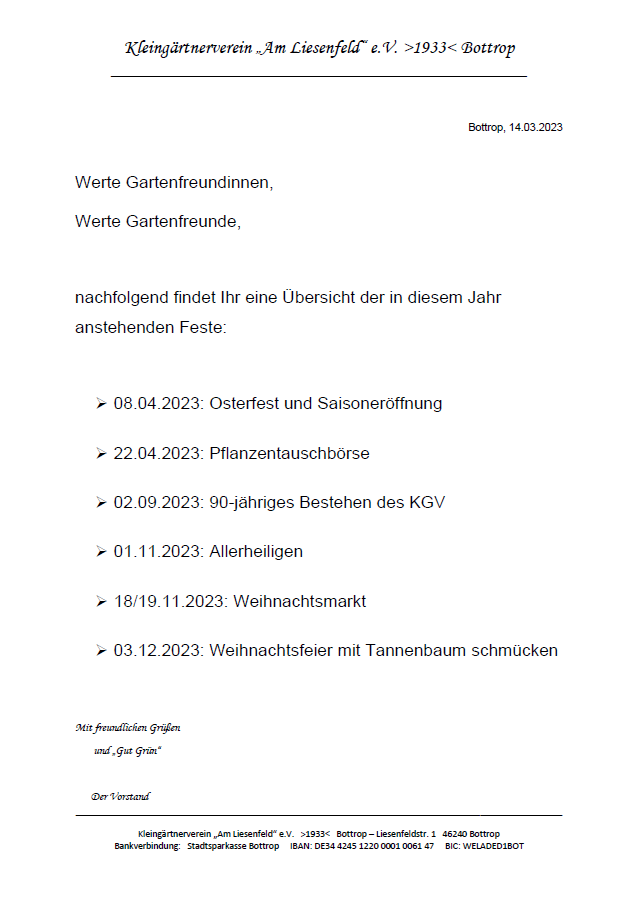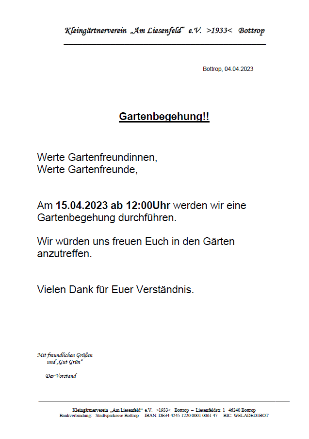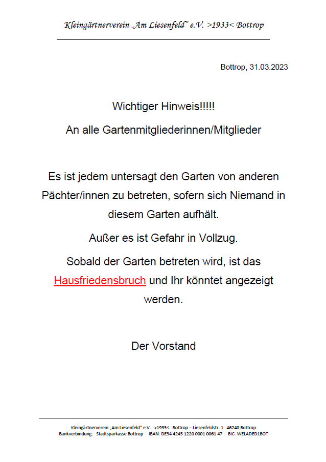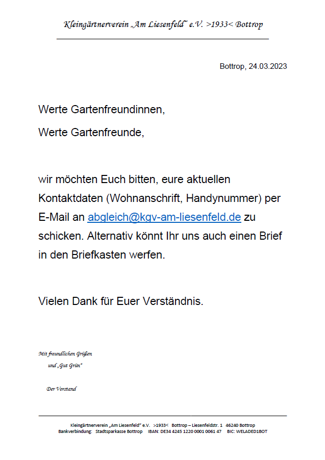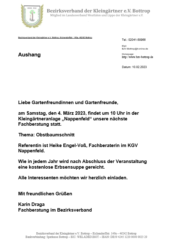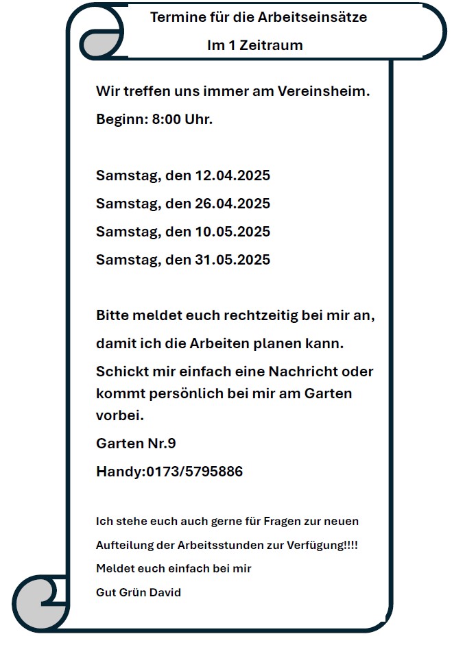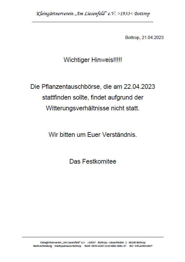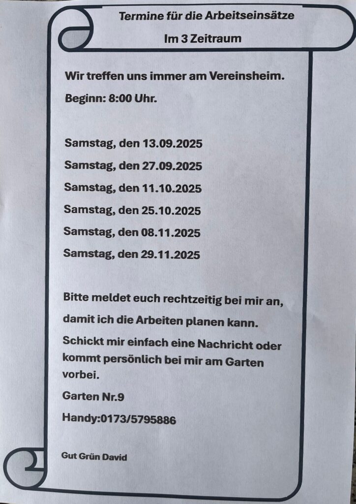 Hier finden Sie alle aktuellen Aushänge unseres Vereins – so, wie sie auch in den Schaukästen im Kleingarten aushängen.